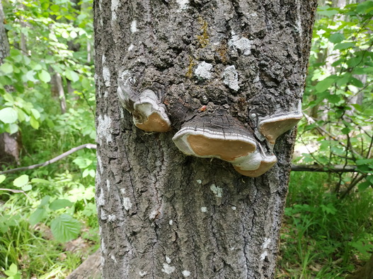 Еще один распространенный вид, зафиксированный на площади 764 га, трутовик настоящий. Данный трутовик часто селится на березах и других деревьях лиственных пород.